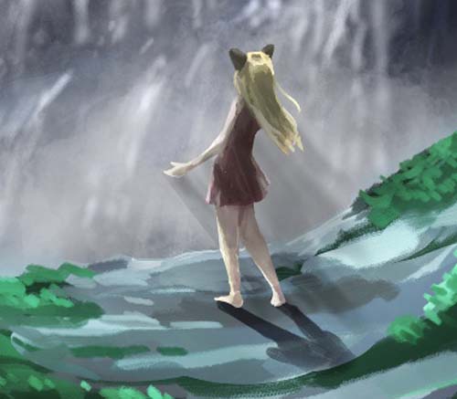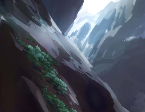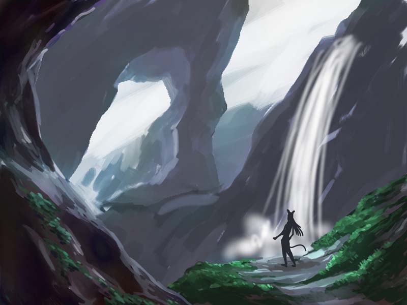 三日目は奥の岩場と滝を描き込んで仕上げ。