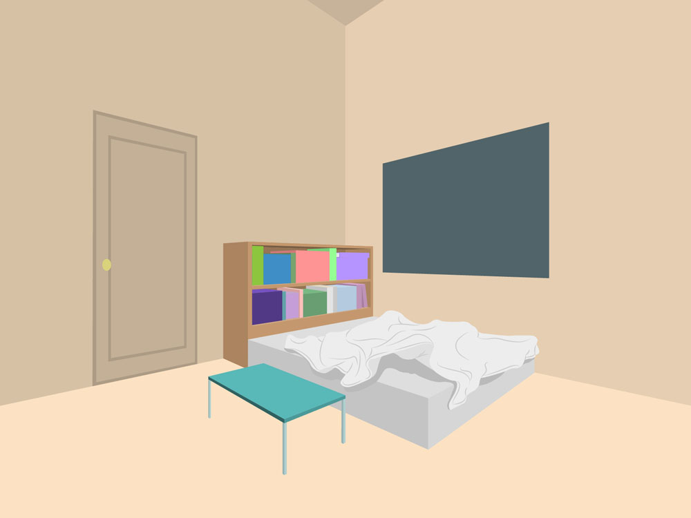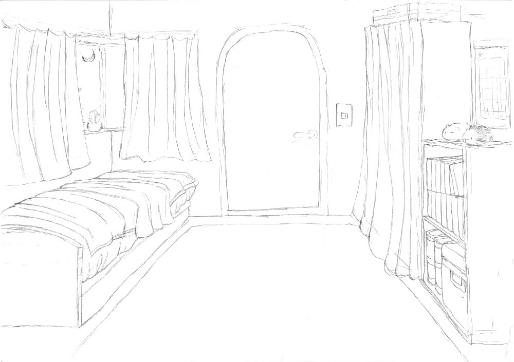 カーテンやベッドの布のシワが難しかったが、