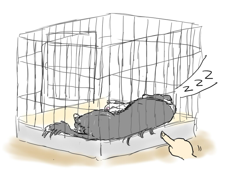 金網の隙間から毛がぴょこぴょこ出ていて、