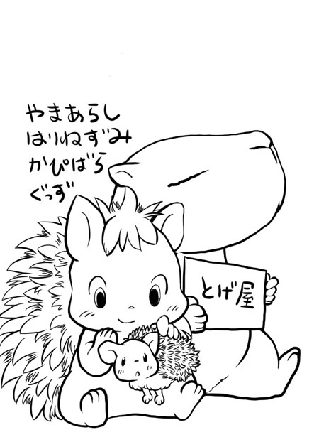 あと、ハリネズミのトゲの色だけ線画ばりに濃くて