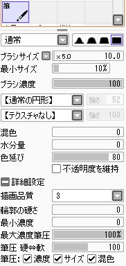 次に同じ輪郭用ブラシで線に強弱をつける。