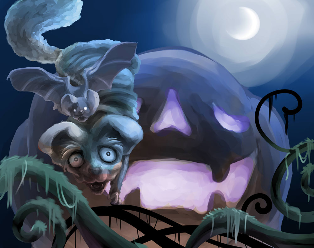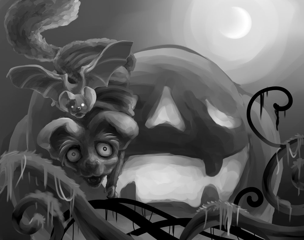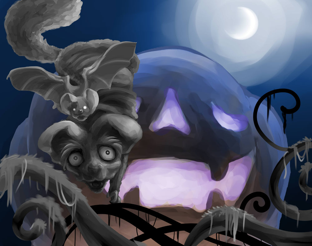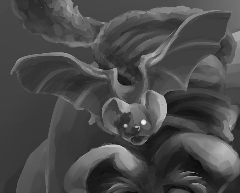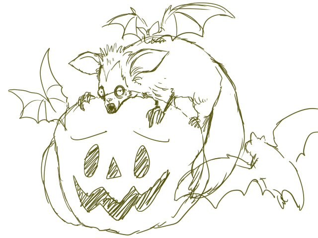 最後に遠景の空にコウモリや星空を描き込んで完成だ。
