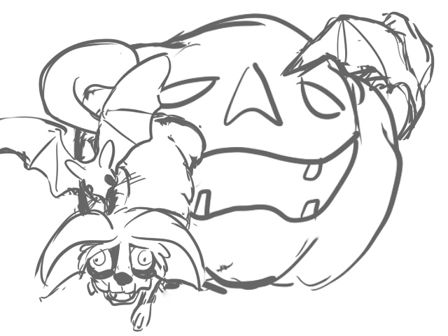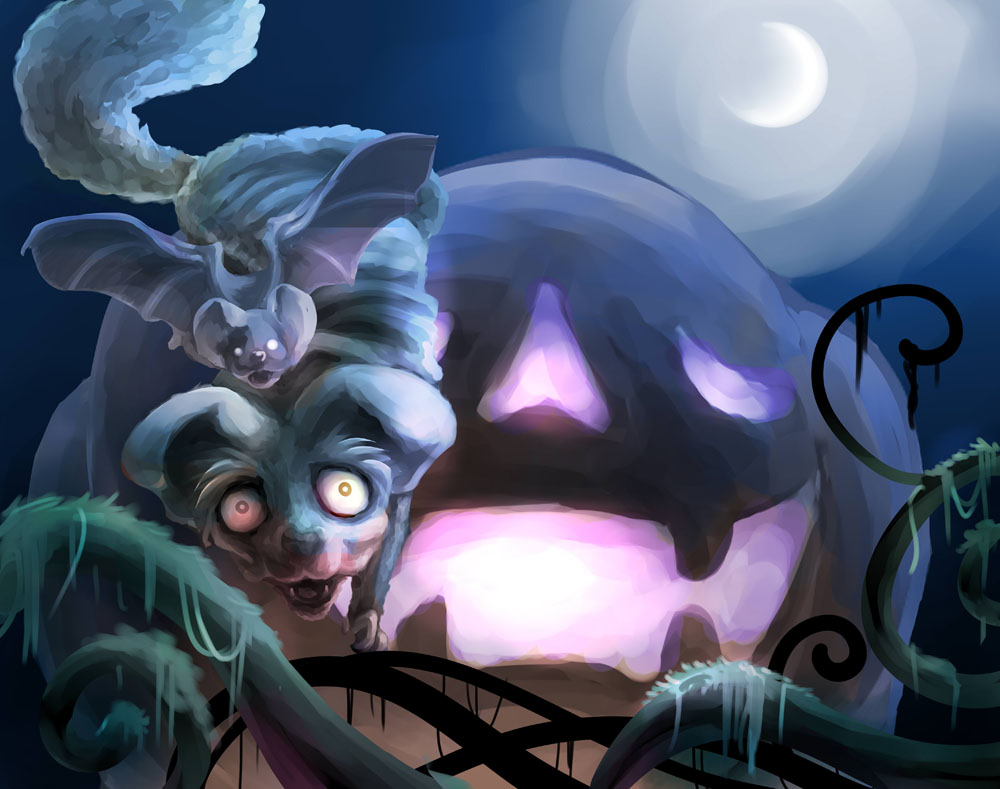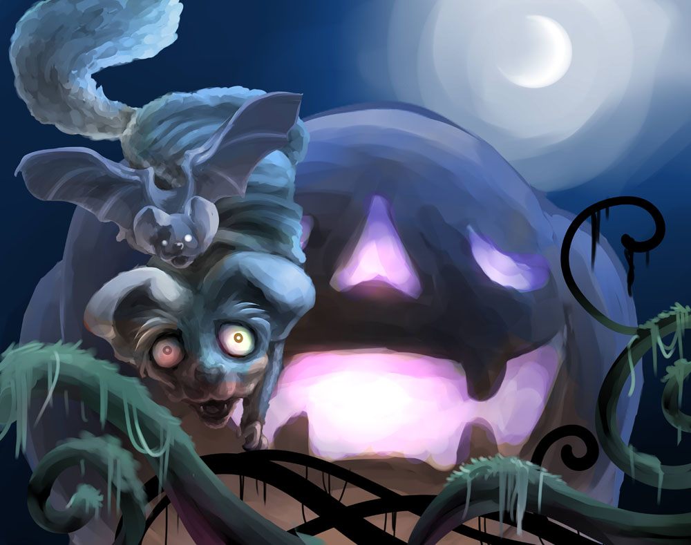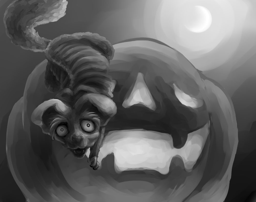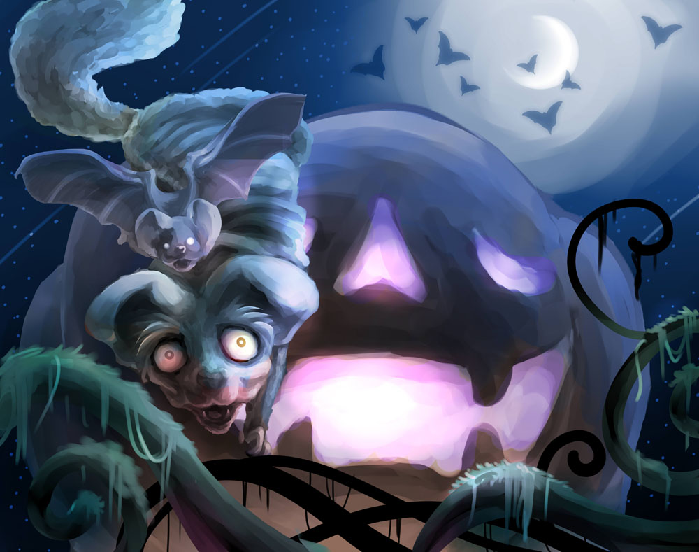 最後に遠景の空にコウモリや星空を描き込んで完成だ。