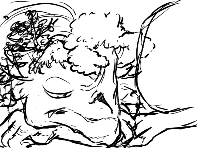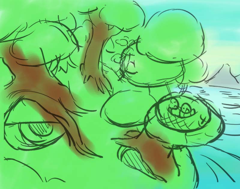 その木に金魚鳥の巣があるという形でラフが完成した。