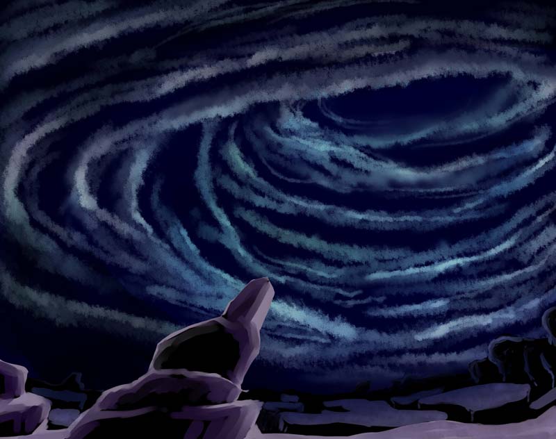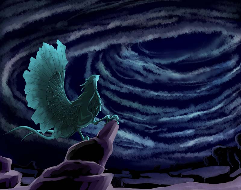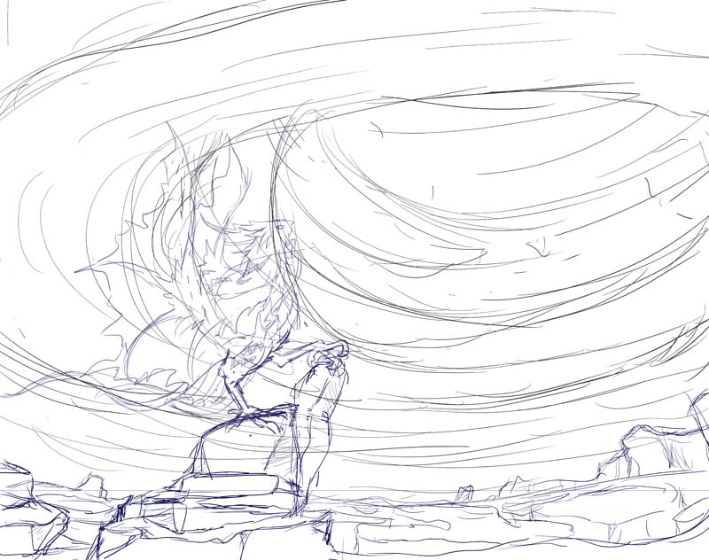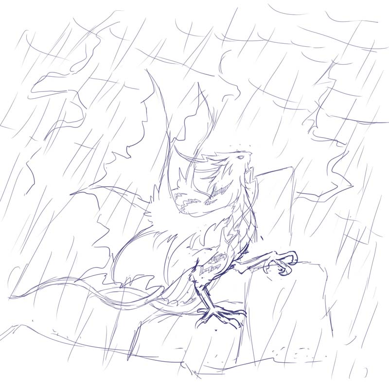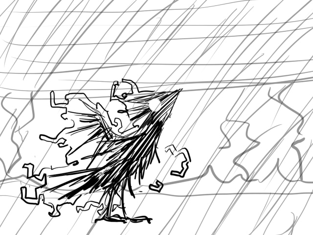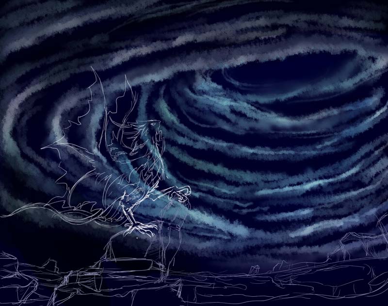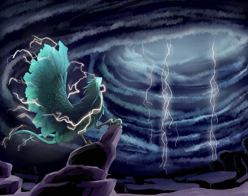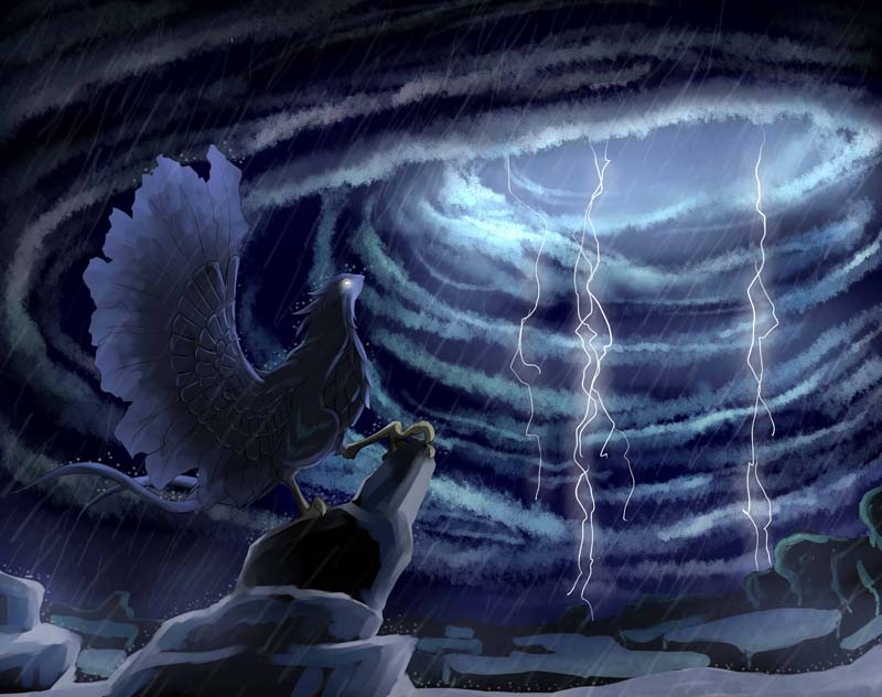雷鳥と荒れ狂う空がどちらも派手になりすぎて、