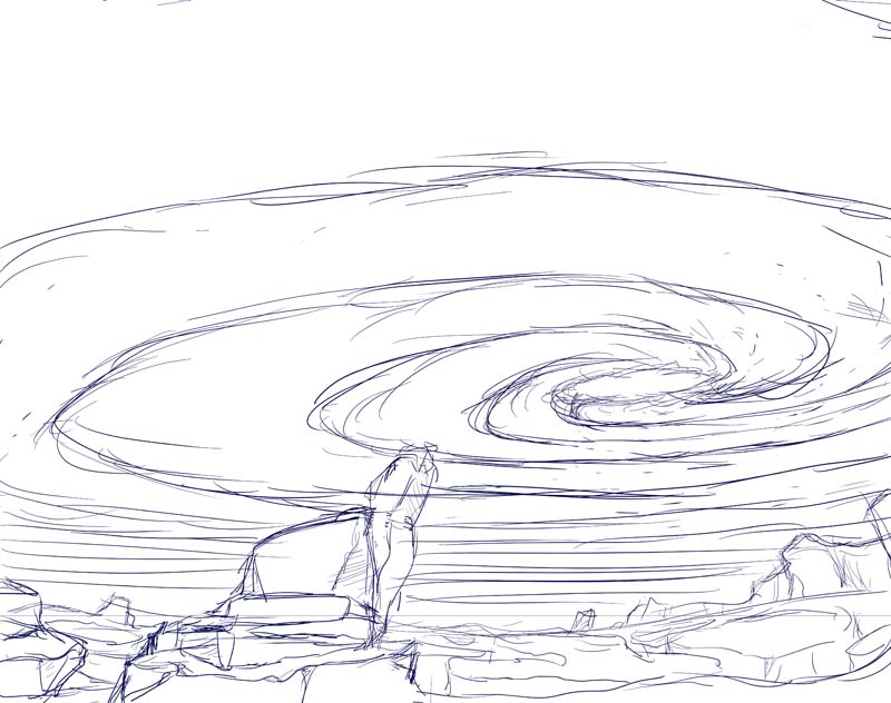 モヤモヤのブラシで雲の輪郭をなぞる。