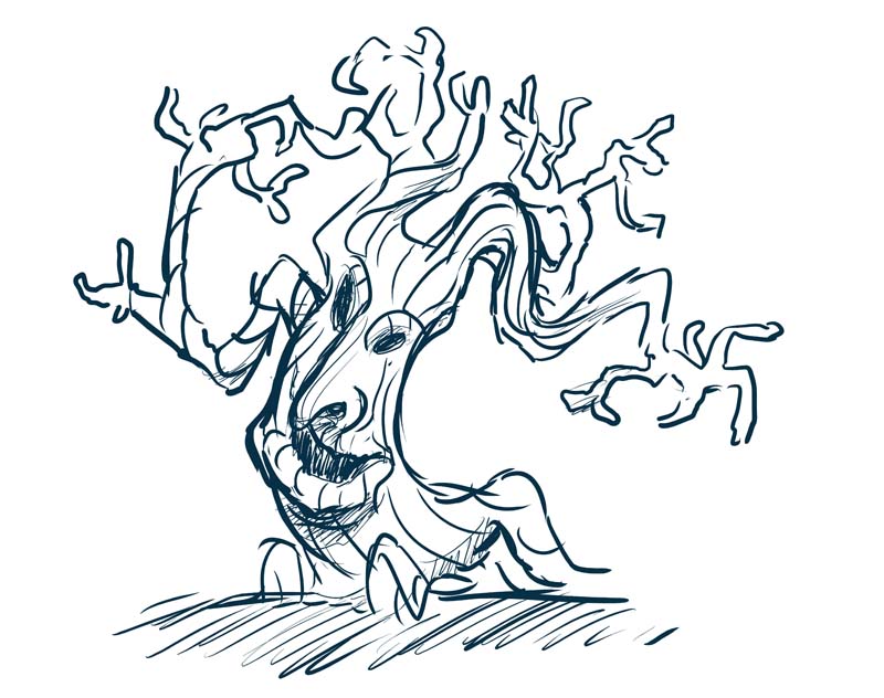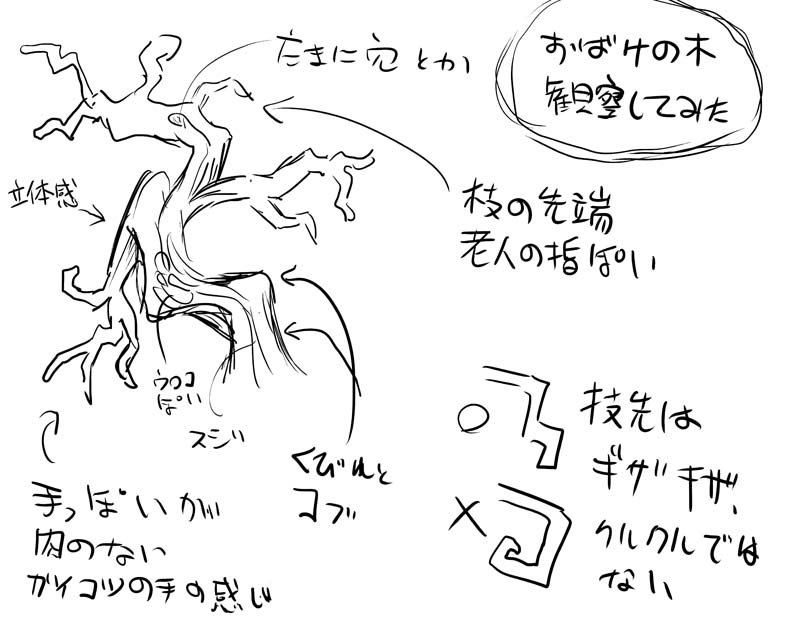 いろんなものを駆使しつつ、おばけの木のデザインと